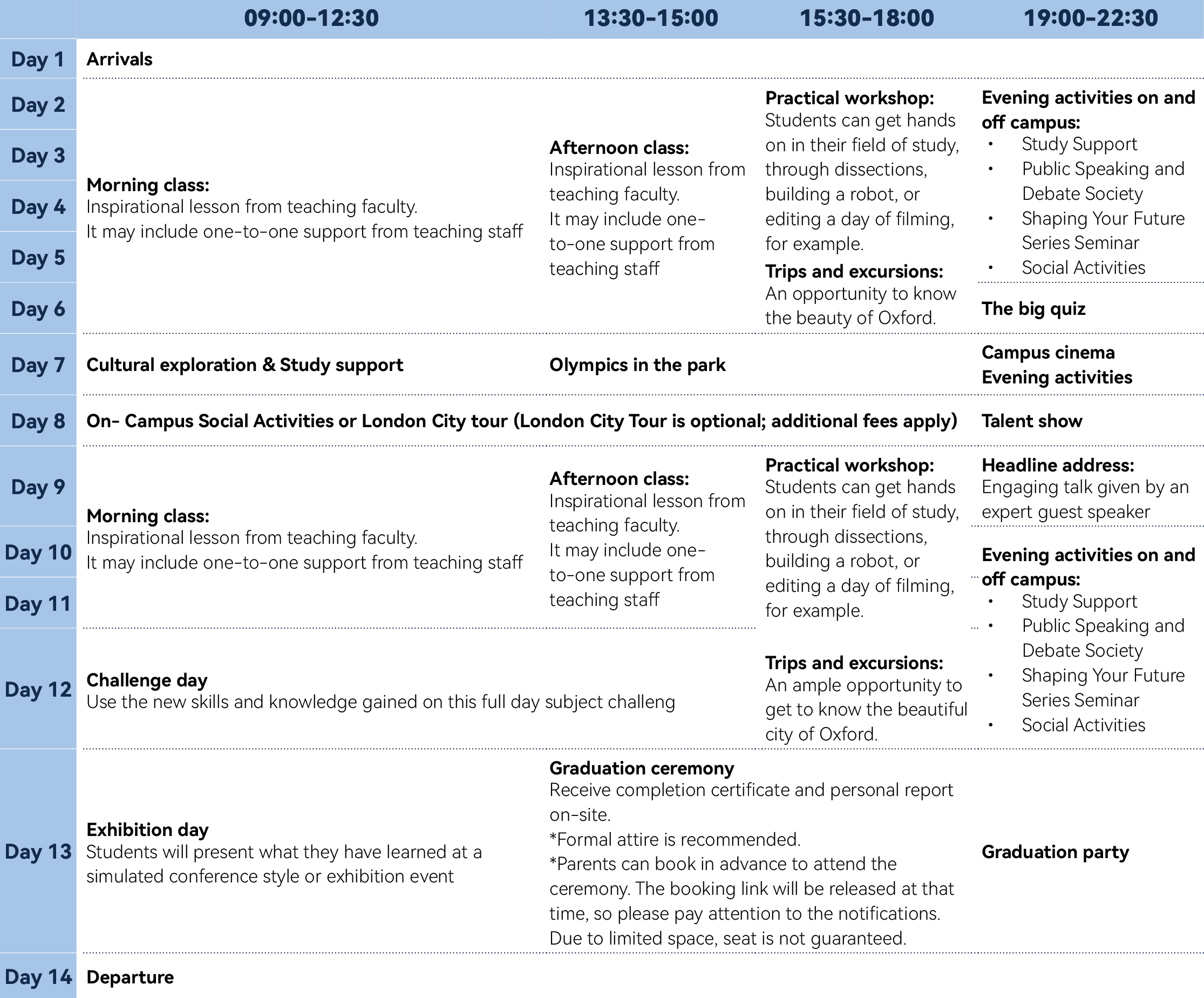 The main idea behind this programme is for young international participants to appreciate the essence of academics and British culture through learning and activities and ultimately be awarded the official certificate and graduation report for their achievements.